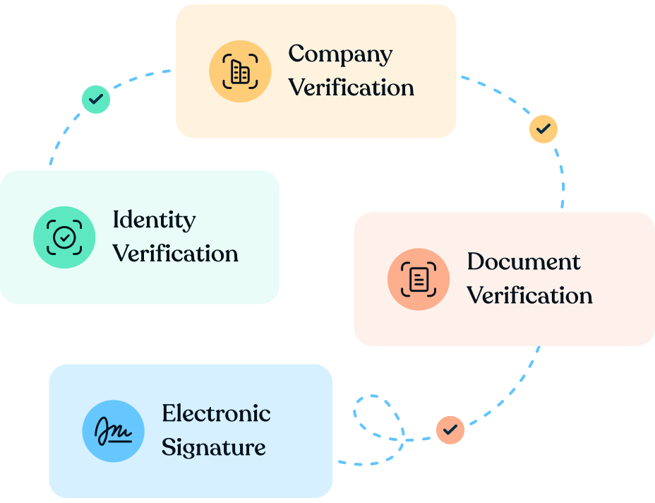 • Track the progress of each action, including Identity Verification, Bank Account Verification, Company Verification, Proof of Address, Watchlist Screening, and Signature Requests.